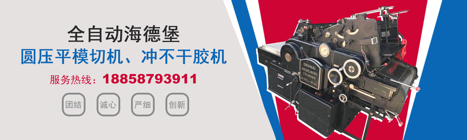 瑞安市恒柯機械廠(www_wzhkjx_com.zxqyglykj.com)是國內專業制造銷售全自動模切機,全自動燙金機,圓壓平模切機,圓壓平燙金機,滾筒燙金機,沖不干膠機,海德堡凸印機.銷售的產品系列規格齊全,產品具有速度快,壓力均勻,套印準確等特點。